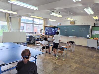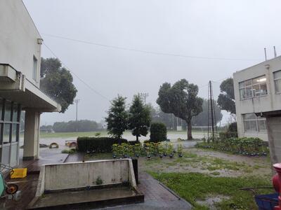 迷惑な大雨と雷鳴でしたが、子供たちはがんばって学習しています。