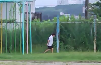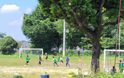 「朝の涼しいうちにサッカーゴールの網を張りかえる」
