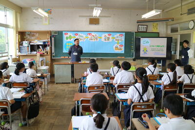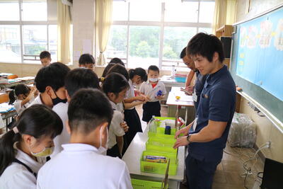 ㈱グリーンロジスティク、㈱星山商店の協力を得て、4年生が環境出前講座を受講しました。