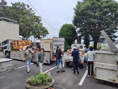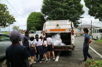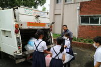 休み時間を挟んで、パッカー車見学とゴミ投入体験