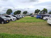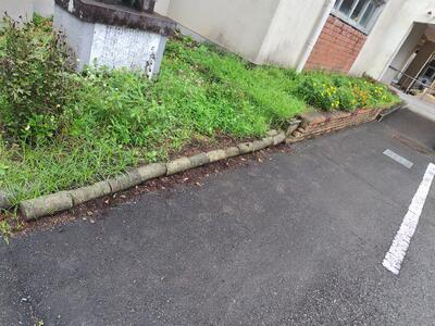 何とか一矢報(いっしむく)おうと、駐車場の草を抜きました。