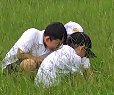 「網をきちんと張るために、学校の鎌を借りて草刈りをされていたこと」