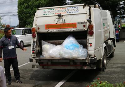 休み時間を挟んで、パッカー車見学とゴミ投入体験