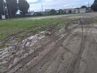 運動場側の門付近も雨でぬかるんでいましたが、何とか出車していただいていました。