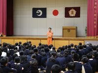 菊池広域連合南消防署の指導の下、火災避難訓練を実施しました。天候不良のため、体育館への避難という形をとりましたが、静かに整然と避難でき、消防署員の方も感心されていました。火事を起こさないための心構えや火災発生時に大切にしなければならないこと、消火器の使い方等について学びました。火事を起こさないことが一番です。 火の用心!!