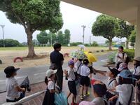 雨が強くなってきたので、運動場にいた子どもたちを教室に返しました。