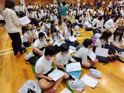 大津町2中7小みんなで、差別を見つめ、考え、自分のこれからの行動を考えた、あっという間の2時30分でした。