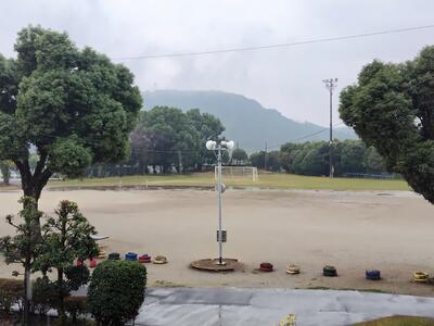 「ランランタイムが始まります。みなさん、運動場に出て走りましょう」