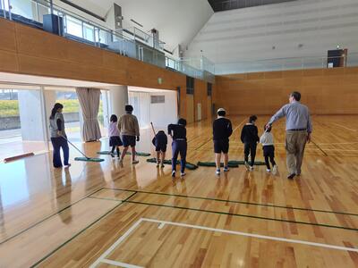 スポーツの森おおづの体育館をきれいに清掃してくれました。
