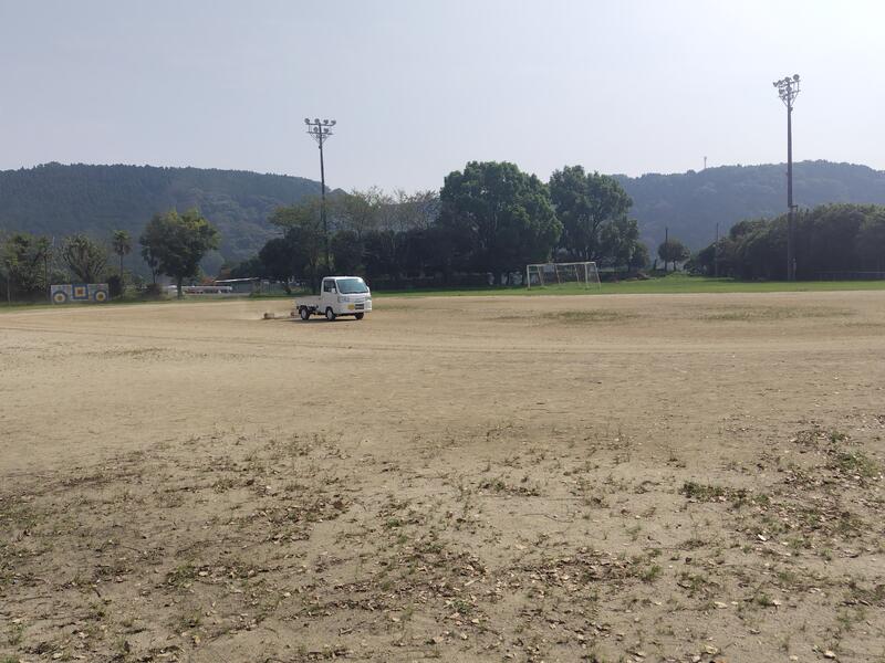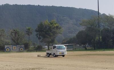 運動場を軽トラックでぐるぐる回る作業はけっこう骨が折れます・・・