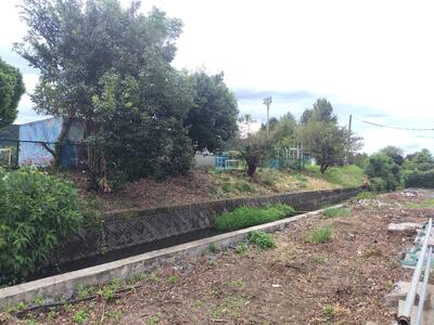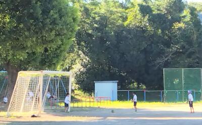 駐車場の井手側がバッサリ刈り込まれ、体育倉庫の向こう側まで見通せるようになっています!