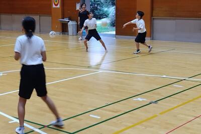 自分たちで班決めを行い、ドッジボールが始まりました。