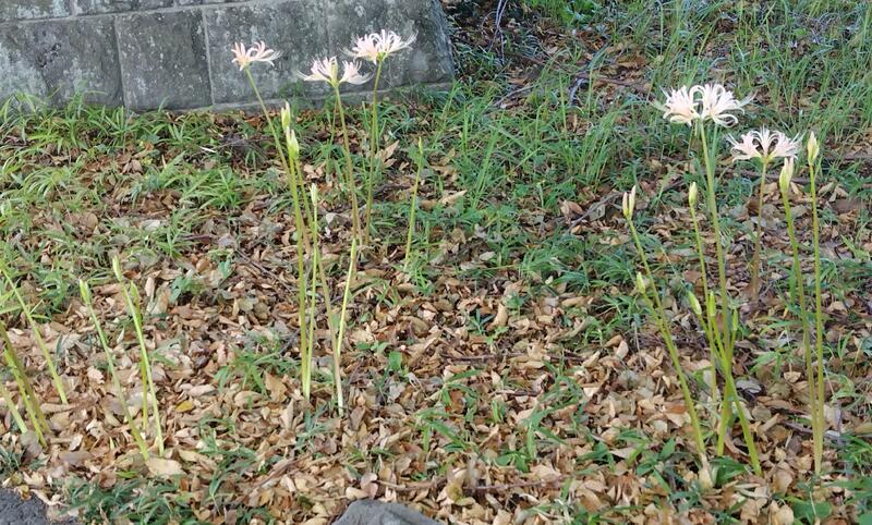 秋の花、ヒガンバナ「彼岸花」、「曼珠沙華」とも呼ばれる花が咲き出しました。