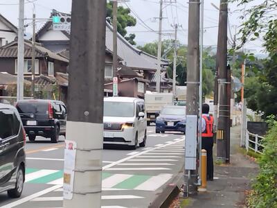 学校前の県道の横断歩道にも、