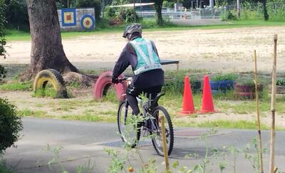 地域の情報を伝えていただいたあと、マウンテンバイクにまたがり、