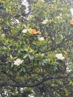 泰山木の花が、晴れ間をねらって、また咲き始めています。