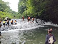 みんな川の感触を楽しみながら、滝のある淵に到着!