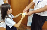 水着を持った子どもたちが登校してきました。