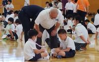 明日からの水遊び、水泳学習のため、菊池広域連合消防本部南消防署3人に来校していただき、講習会を開催しました。