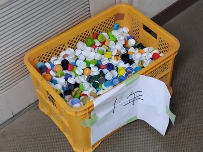 昨年、環境美化委会が行ったペットボトルキャップ集め、
