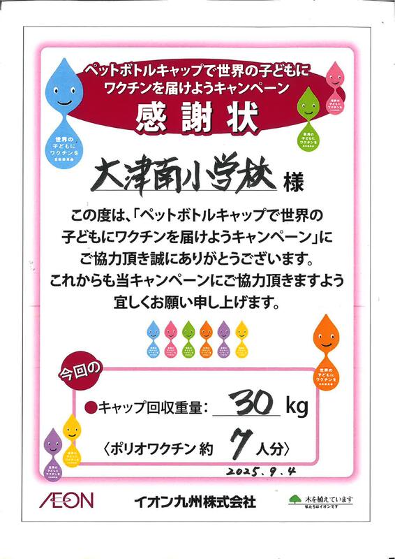 イオンを通じ、ポリオワクチン約7人分として寄付することができました。