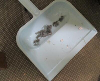上の写真のように、毎回と言っていいほど、机やコピー機の下にたまったまっくろくろすけを退治してくれています。