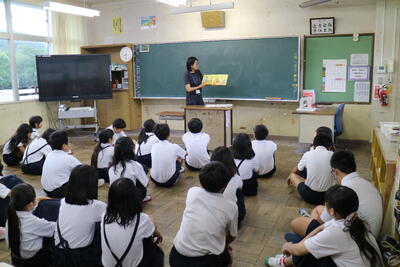 「元気にしっかり聞いてくれました!通潤橋の見学のお話を教えてもらいました」