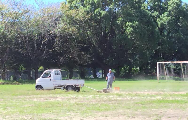 運動場の芝を刈っていただきました。