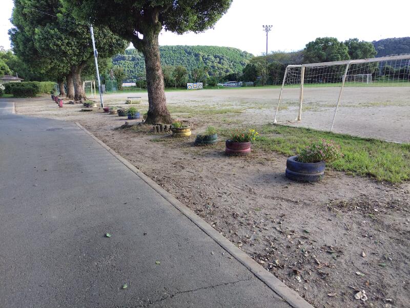 グランドののフェンス沿いの草刈り、運動場の芝を3時間も刈っていただきました。