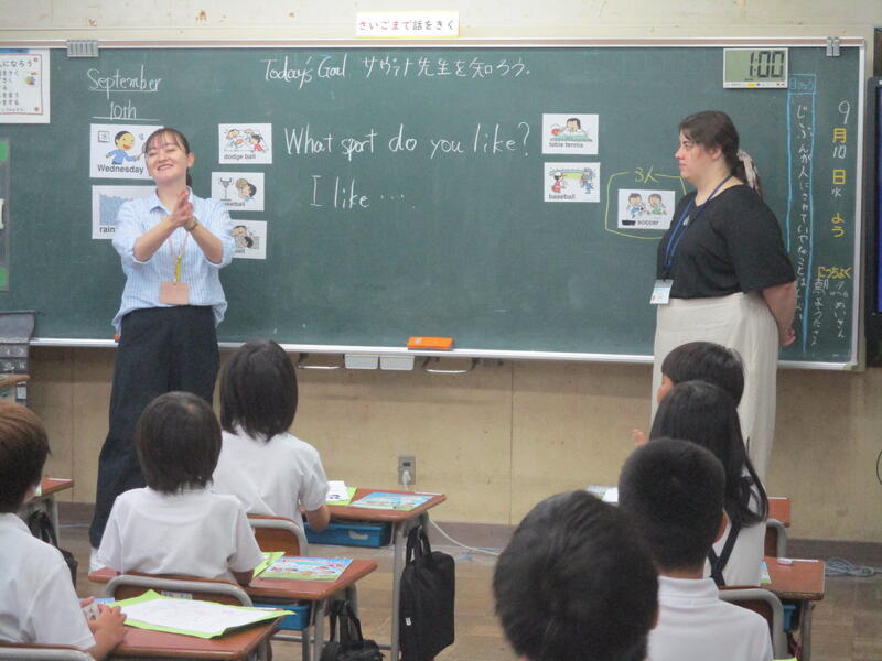ALTの先生とのかけ合いで、サヴァナ先生やアメリカの生活についてしっかり学んでいました。