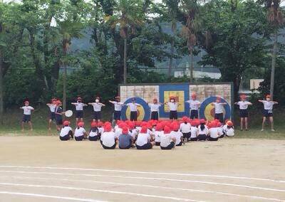 応援団が、低学年の子どもたちを並べ始めます。