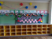 短時間の間に、5、6年生の、先生方の新1年生に対する思いがこもった会場が見事に出来上がりました。