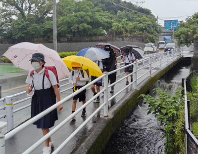 県道202号線は、雨の日はさらに交通量が増し、場所によっては、車がはねる水しぶきが歩道まで飛び散ります。
