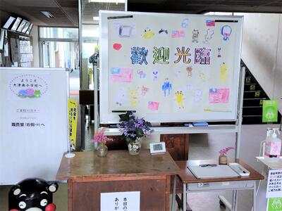 ウエルカムボードが玄関に掲示され、国際交流担当と教頭先生、担任の先生方を中心に、勝利國小との交流の準備が着々と整えられました。