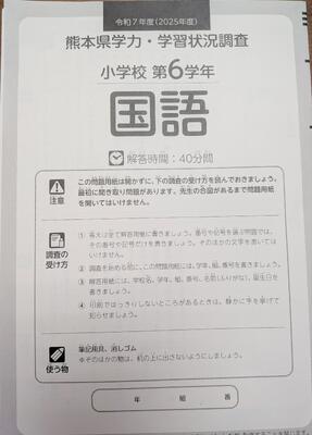 2校時、1~6年生全校児童が、町・県学力・学習状況調査「国語」を受検しました。