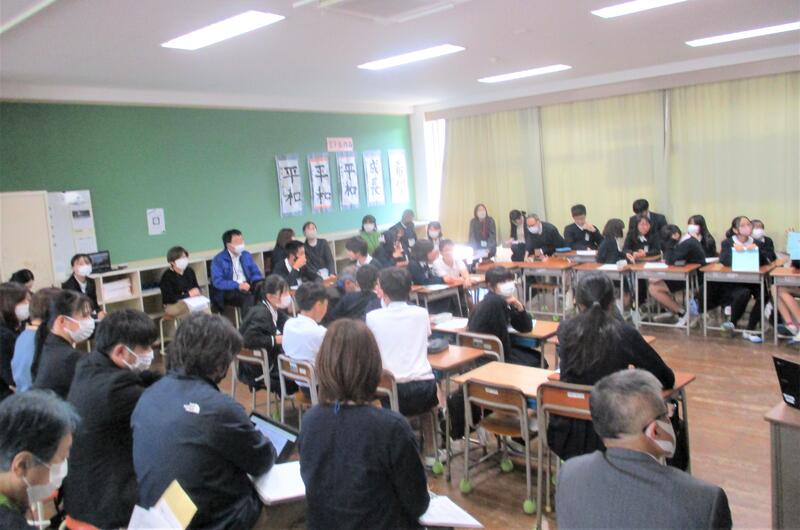 たくさんの先生方に囲まれながらも、友だちの意見を聴き合い、