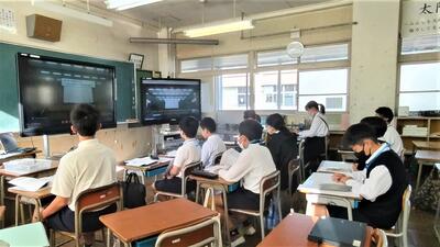 南小はインフルエンザが流行していたため、4・6年生は6年教室、5年生は自宅からのオンライン参加となりました。