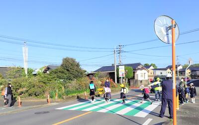 交通指導員さんと地域学校協働活動推進員さんに指導していただいています。