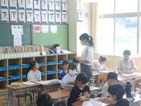 4人のボランティア、先生方が子どもの分からないを個別指導