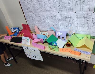 教室をのぞきに行くと、1年生は、ちょうど図工が終わったところでした。