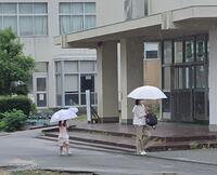 今日の校門は、送迎の車がひっきりなしに来校していました。