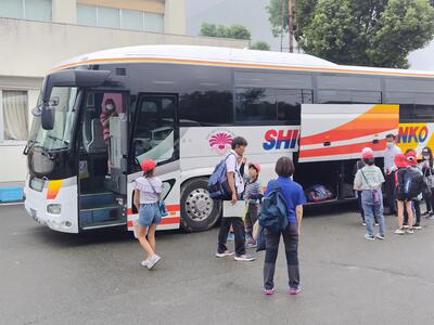 5年生を乗せたバスが13:00を過ぎて到着・・・