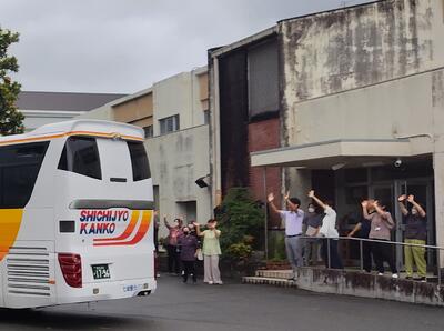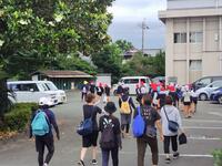 5年生を乗せたバスが13:00を過ぎて到着・・・