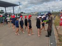 しかし、きく組さんが来校する前に、5年生は運動場に整列!