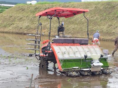 ただし、田植えのスピードは、熟練した人がトラクターで植えた方が速いんだそうです。