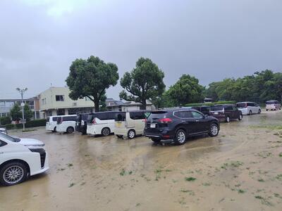 ※職員室前駐車場に止めた車が正門から出ようとしたため、入って来る車を遮ったり、自分の車に児童を乗せるために、運動場に入ろうとしている車を止めたりする人がいました・・・