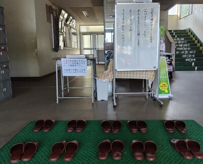 出勤し玄関に入ると、ウエルカムボードと来客用のスリッパが並んでいました。