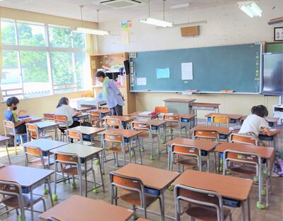 セミの声しかしない朝の学校に、子供のにぎやかな声がしました。