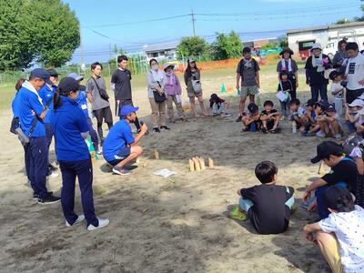 第2回親子ふれあい作業後、2年生の保護者と子供たち、先生方、そして大津町スポーツ推進委員の協力を得て、2年生の学年行事「モルック」が開催されました。
