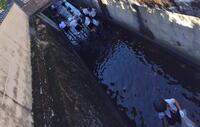 手袋をつけた手でかき集め、がんばって移動させていたようです!